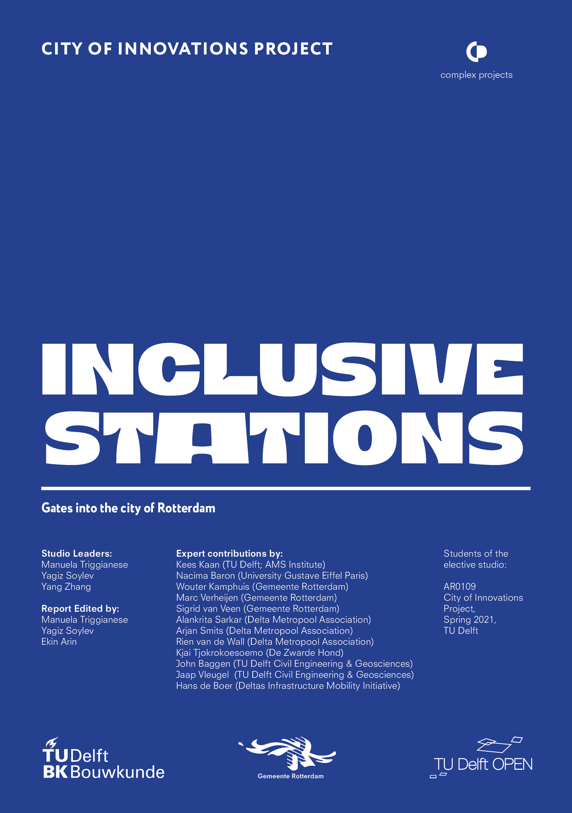Inclusive Stations is a book that showcases the process and final products of the Spring 2021 City of Innovations course at TU Delft. The students were asked to analyze, understand and develop proposals for three different transportation hubs in Rotterdam. The course was in collaboration with the City of Rotterdam, from which experts were invited to give lectures and reviews on students’ work. My role as a student assistant in this course was to give weekly input on students’ analysis and proposals; help create the course structure; prepare necessary materials; put together relevant resources and arrange logistics, when needed. For this publication I developed the template, collected the work, edited the visuals and texts and finalized the document.