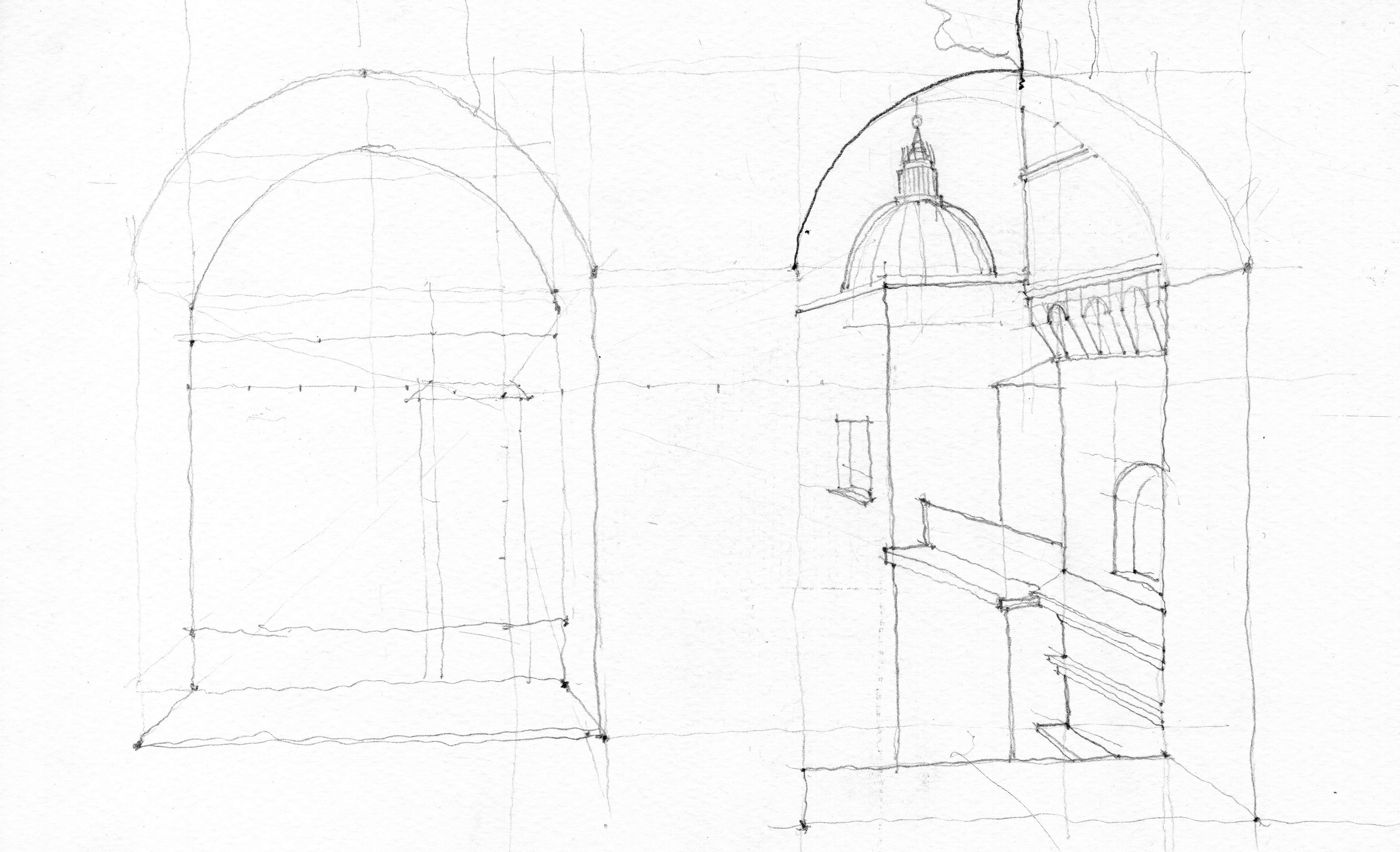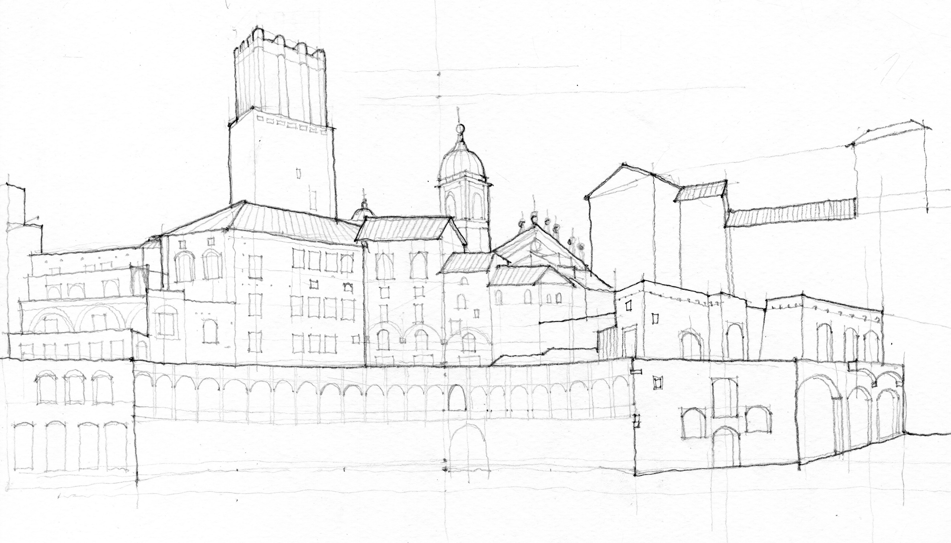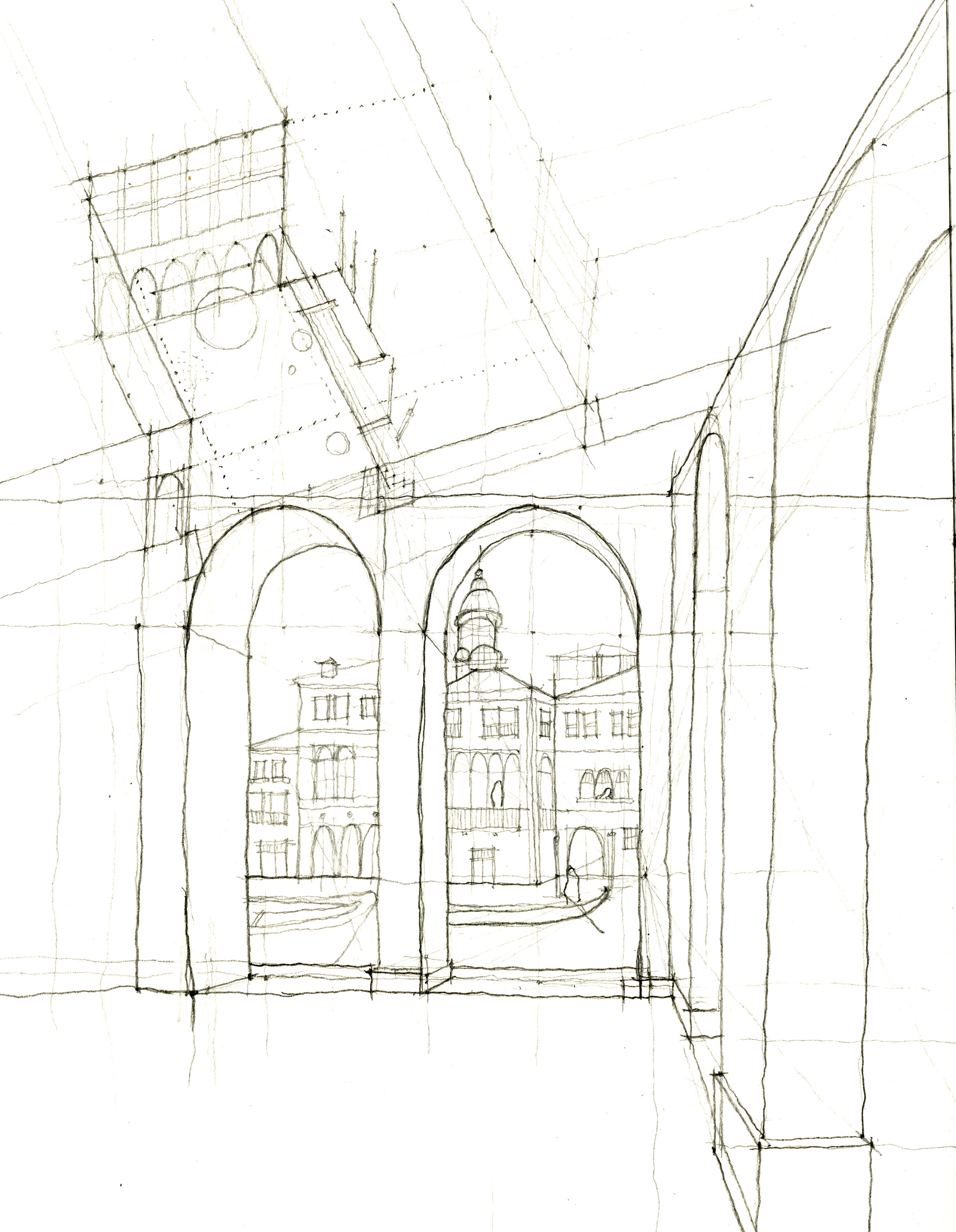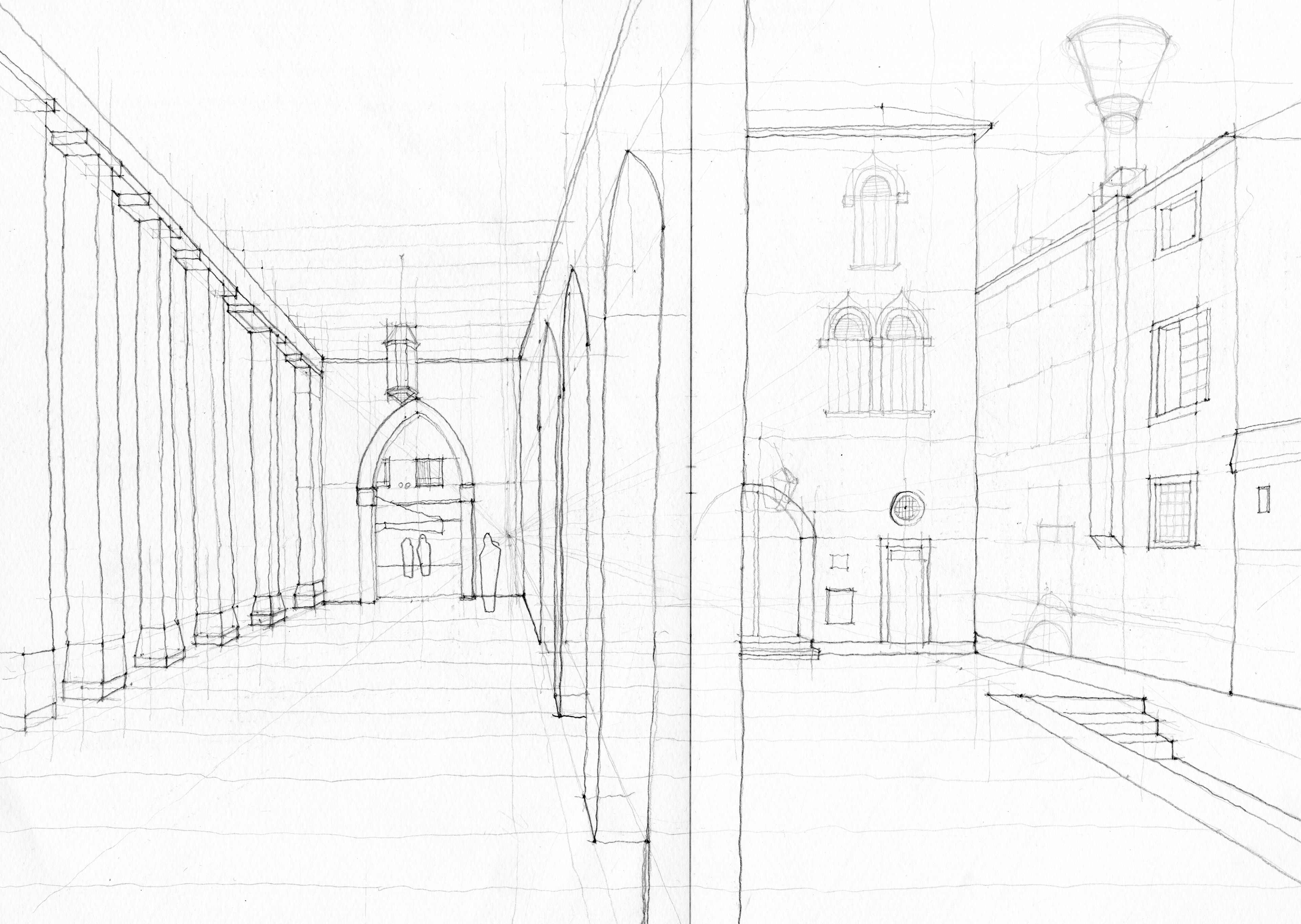 The first two weeks of the Venice Program, we practiced free-hand drawings at various sites through the city. This method of using the hand to analyze the city continued throughout the semester.